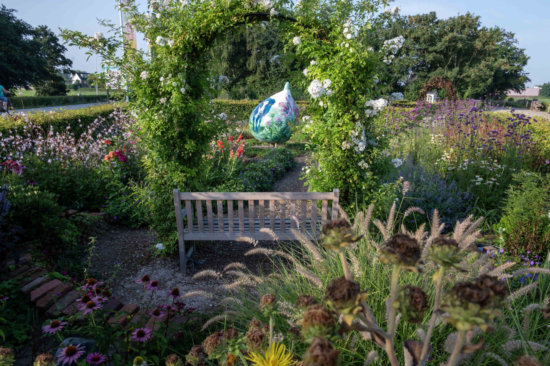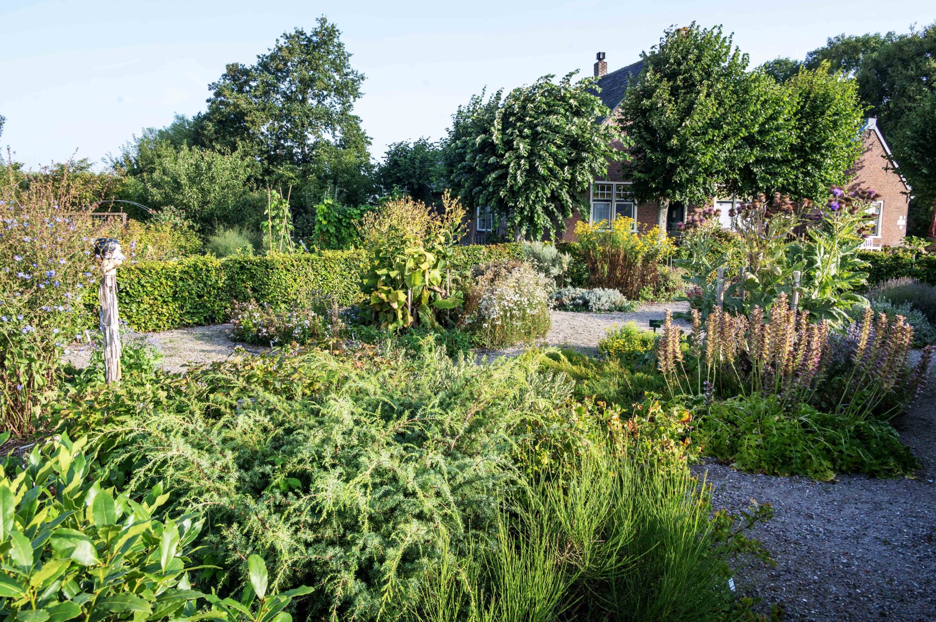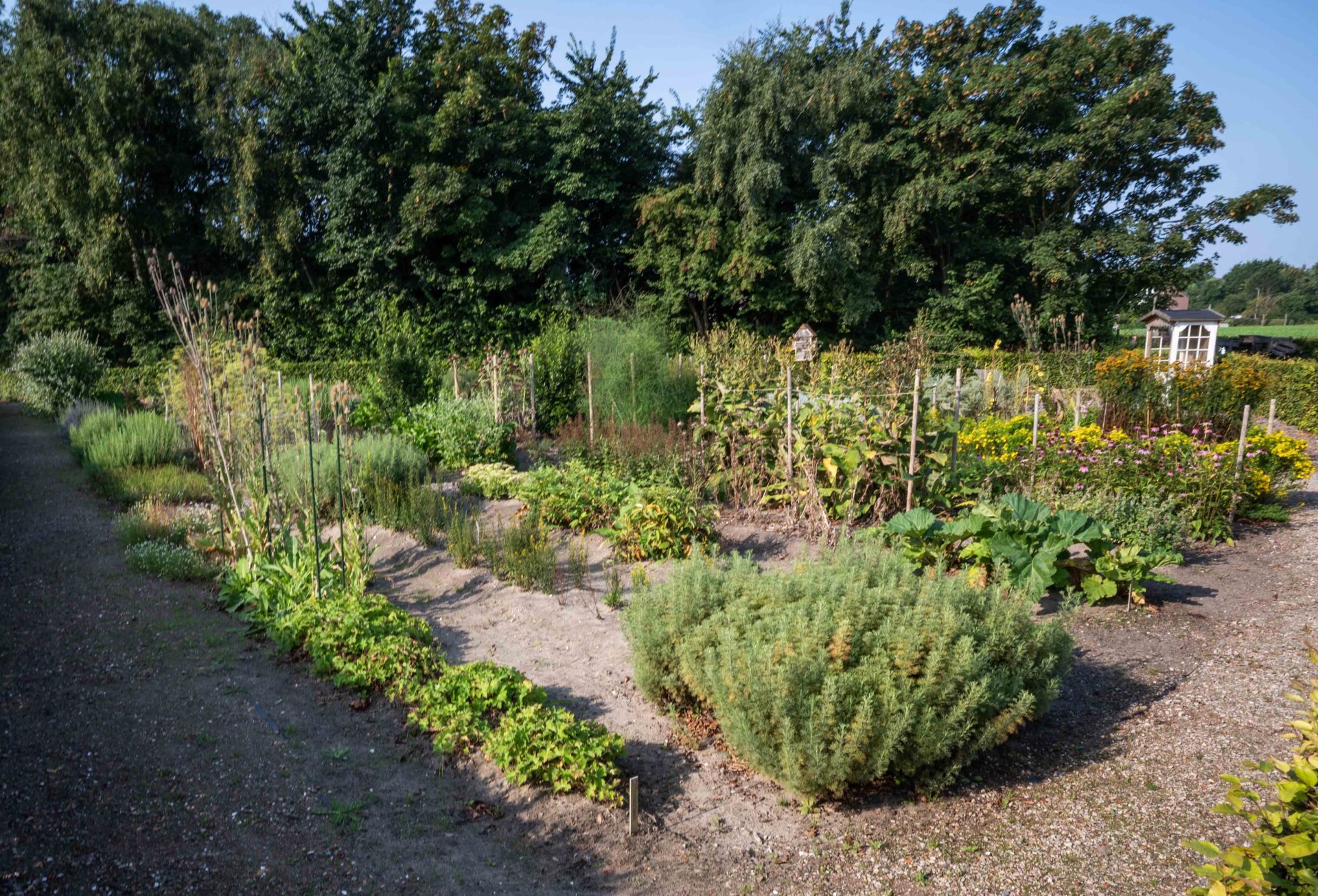 De tuinen rondom de boerderij staan er mooi bij. Ondanks de warme zomer staan nog veel planten in bloei.