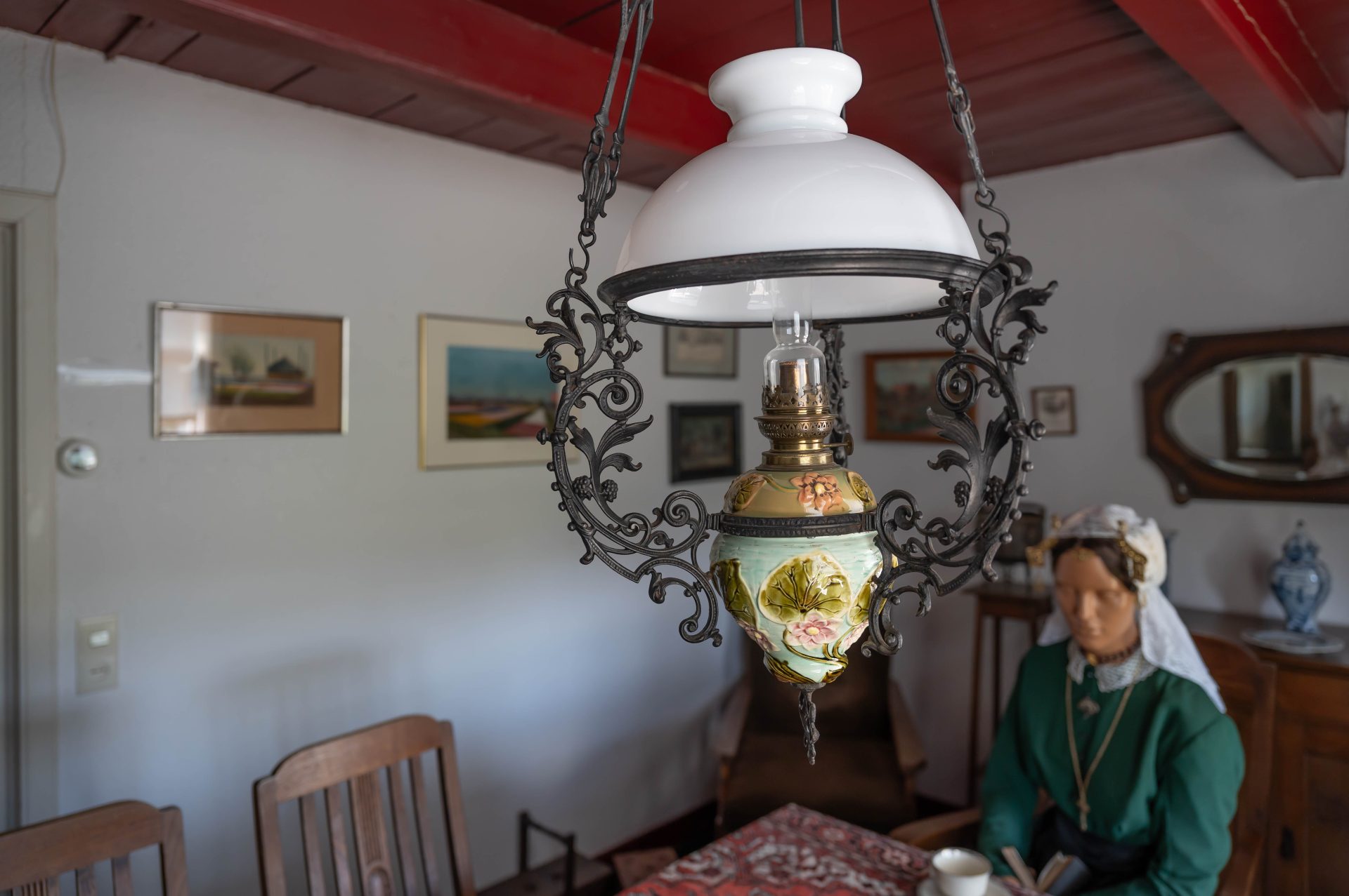 Bezoekers van het museum zijn altijd verrast als ze de woonkamer van het zomerhuis binnenstappen. Je gaat ruim honderd jaar terug in de tijd. Boven de tafel hangt een prachtige olielamp uit circa 1900. Hij is gemaakt van porselein en koper gedecoreerd.