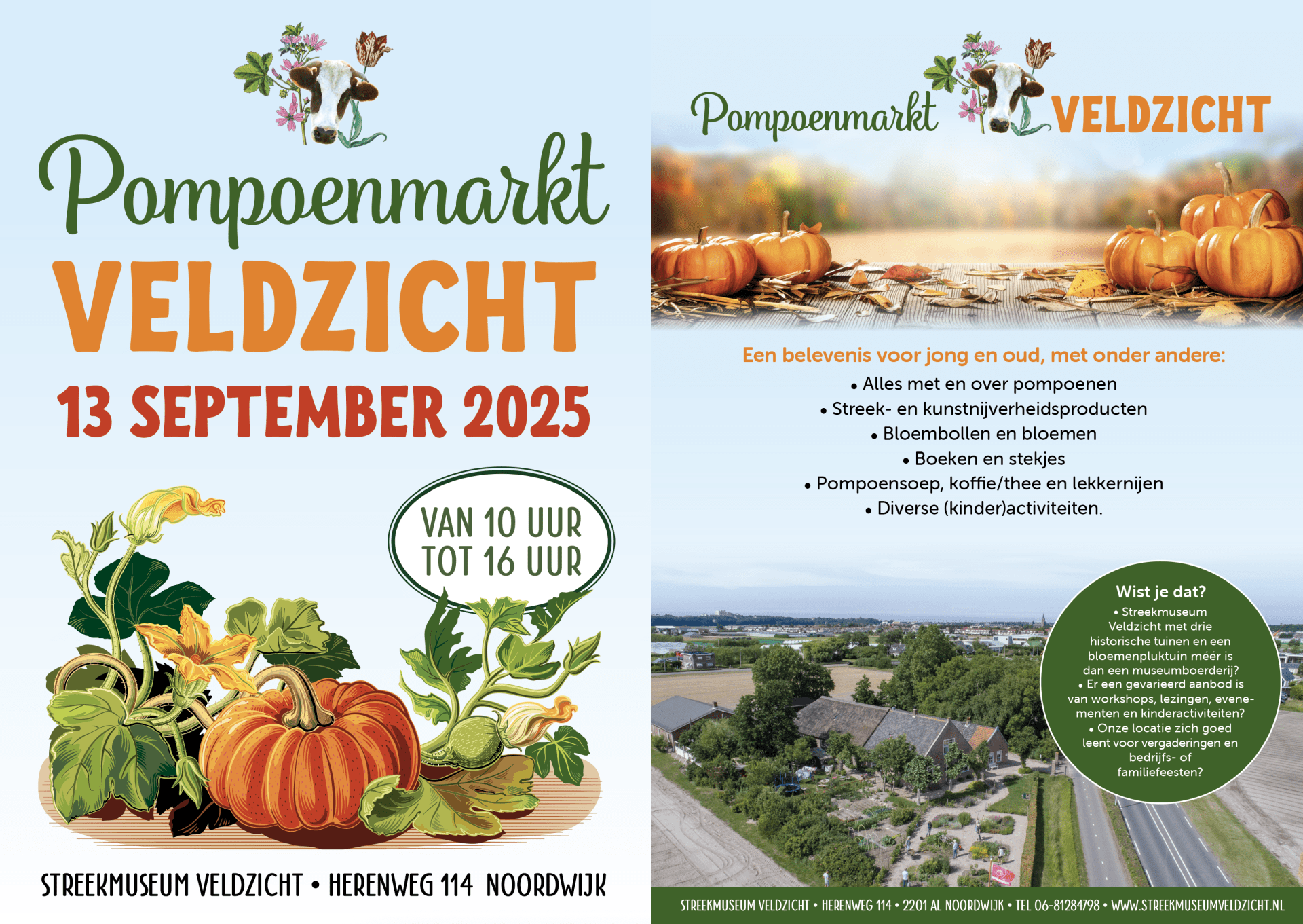 Op 13 september is van 10 tot 16 uur weer de jaarlijkse Pompoenmarkt op Veldzicht. De markt valt samen met de Open Monumentendag.