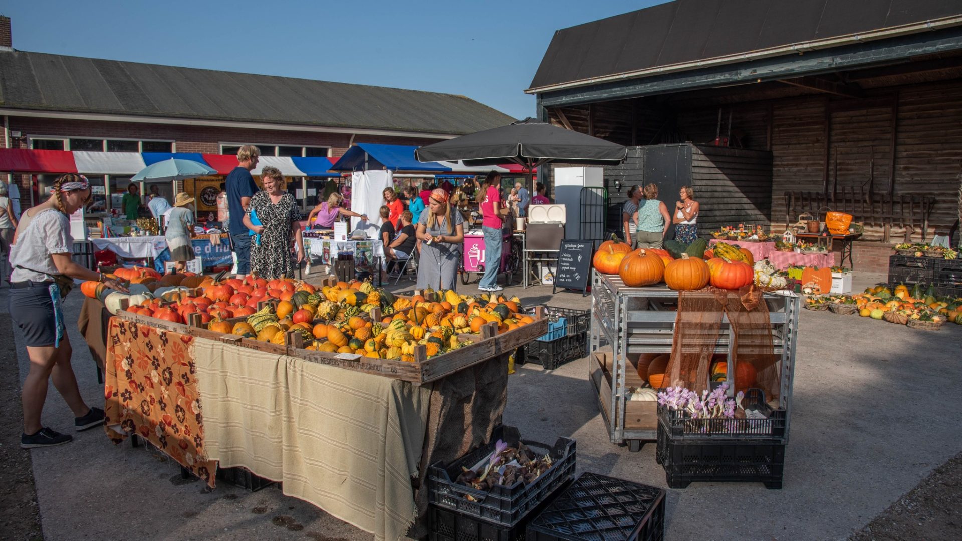 Een gezellige markt met allerlei pompoenen, streek- en kunstnijverheidsproducten, bloembollen en bloemen, boeken en stekjes. Ook heerlijke pompoensoep, koffie/thee en lekkernijen. Voor de kinderen zijn er leuke activiteiten.